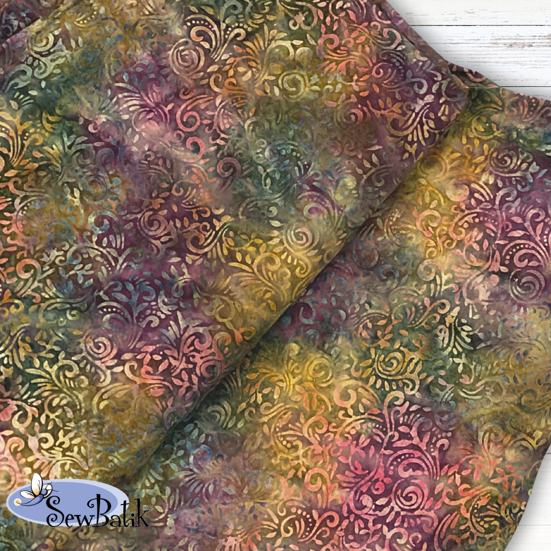 69" Wide Batik Cotton Jersey Knit. This is a very stable knit with very little one way stretch. It's 100% cotton. It's a great weight for t-shirts, dresses, jackets and accessories.