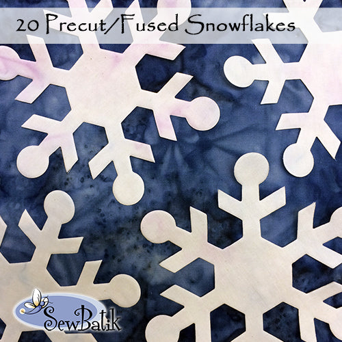 The snowflake measures 3 7/8" x 4 3/8". Simply remove the back covering from the fusible shape and iron to your fabric project. Stitch on top to secure.